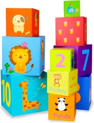 Ces blocs colorés contiennent des chiffres, des animaux et des mots anglais, aidant ainsi à l'apprentissage et au développement des capacités cognitives.