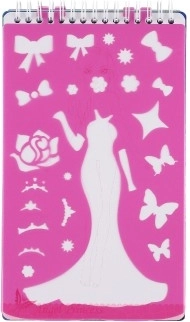 - Contenu de l’emballage : carnet à reliure spirale, 2 pages effaçables, 4 feuilles de pochoirs, 30 pages avec silhouette de base