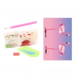 Le coffret contient tout ce dont vous avez besoin pour créer : applicateur (stylo), tampon de cire pour saisir facilement les strass, plateau de tri et sachets de strass colorés. Le kit convient aux enfants dès 5 ans et favorise la patience, la motricité fine et la concentration.