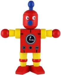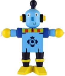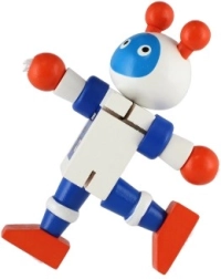 Adorable robot en bois de 12 cm qui ravira chaque petit explorateur. Grâce à ses élastiques, il possède des membres et une tête articulés, ce qui permet aux enfants de l’asseoir, le faire tenir debout ou l’arranger de multiples façons. Le jouet développe la motricité fine, la créativité et l’imagination. Convient à partir de 18 mois.