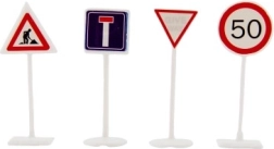 Le set comprend des symboles connus comme Stop, limitations de vitesse ou triangles de danger. Les enfants acquièrent les bons réflexes de circulation de manière naturelle.