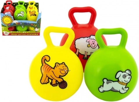 Le chat, le chien ou le mouton sur des balles colorées attirent l’attention et soutiennent la perception visuelle.