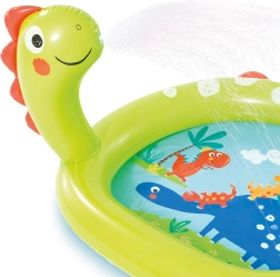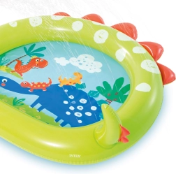 Jouette piscine gonflable avec une fontaine et un motif de dinosaure idéale pour le divertissement estival dans le jardin. La piscine est fabriquée en matière PVC de qualité avec des dimensions de 119 x 109 x 66 cm.