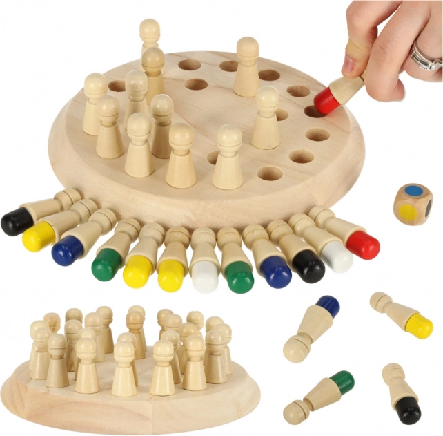 Mémorisez les positions des couleurs, retournez les chevilles et, selon le résultat du dé, trouvez la couleur correcte. Règles simples, grand bénéfice cognitif.