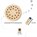 Un plateau circulaire pratique de 16 cm de diamètre et de petites chevilles qui tiennent parfaitement dans la main des enfants et se transportent facilement.