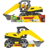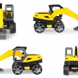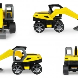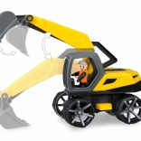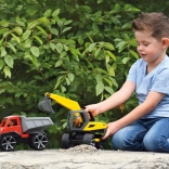 Pelleteuse robuste pour enfants de la série TRUXX 2 pour jouer à la maison comme en extérieur. Propose un châssis rotatif avec verrou de sécurité, un bras entièrement fonctionnel avec godet commandé par une poignée, et une figurine de conducteur dans une cabine facilement accessible. Fabriqué en plastique sans substances nocives en République tchèque.
