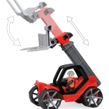 Ce chargeur télescopique est fabriqué en plastique de qualité et propose une structure solide qui résiste au jeu intensif. Grâce aux roues revêtues de caoutchouc et silencieuses, il est idéal aussi pour jouer en intérieur. Avec la cabine rabattable et la figurine active, les enfants peuvent facilement s’imaginer opérateurs d’un vrai véhicule de chantier.
