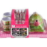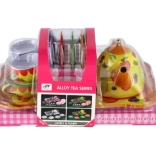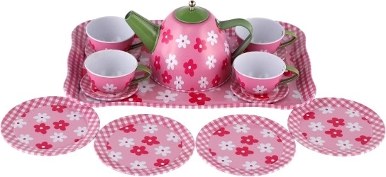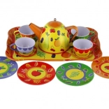 La boîte contient tout le nécessaire pour un petit goûter-thé – une théière, des tasses avec soucoupes et des assiettes. Le set est idéal pour développer les compétences sociales, apprendre les règles de table et jouer ensemble avec les amis. La vaisselle n’est pas destinée à la préparation réelle ni à la consommation de boissons.