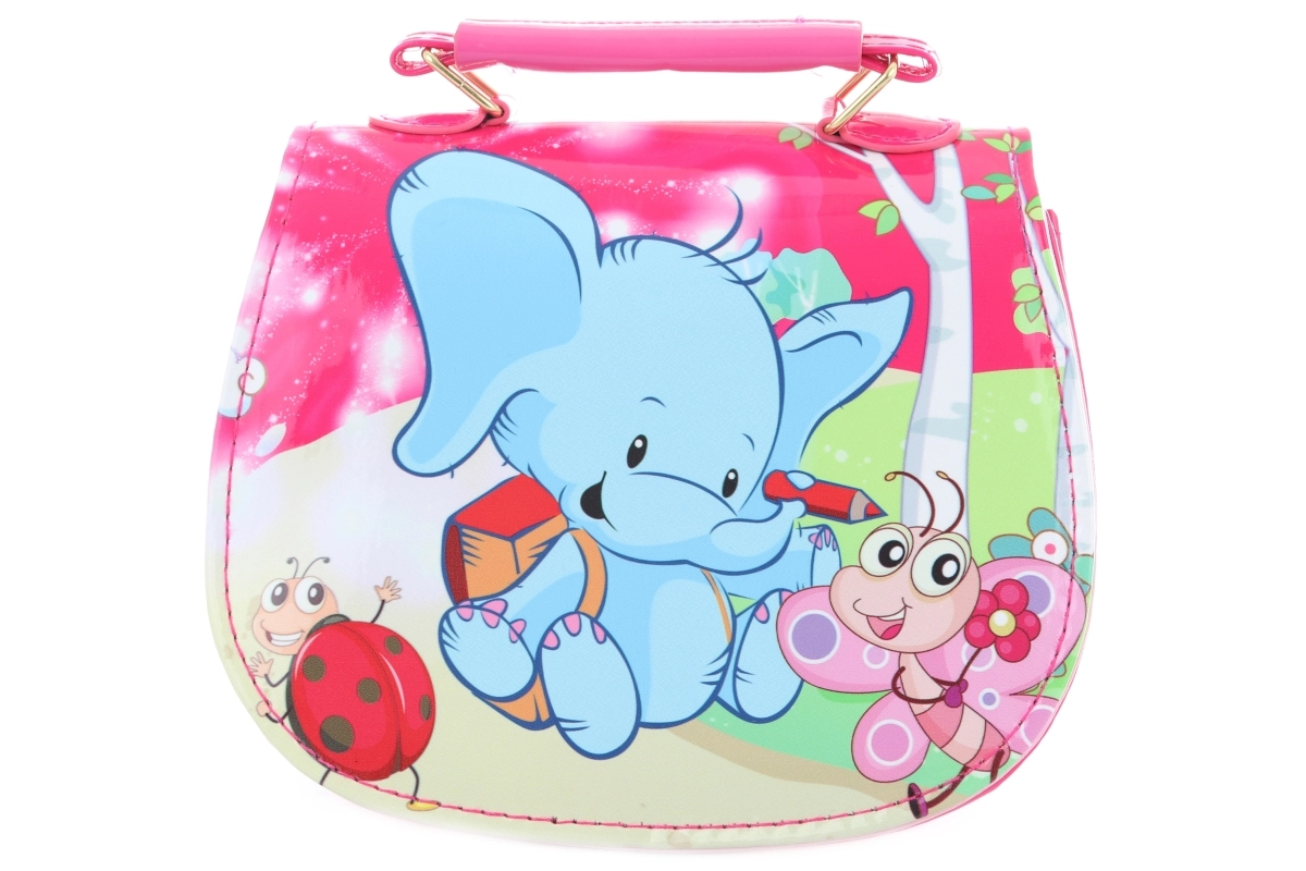 Adorable sac à main rose avec éléphant pour petites coquettes. Idéal pour emporter de petits objets en sortie ou à la maternelle. Il offre des dimensions compactes, un faible poids et un port confortable pour les enfants à partir de 3 ans.