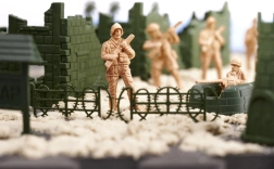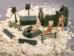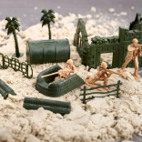 Il comprend environ 60 figurines de soldats dans diverses positions et de nombreux éléments pour construire une base militaire – barils, clôtures, obstacles, palmiers et plus encore. Les figurines mesurent environ 5 cm de haut, tiennent bien sur une surface plane et se disposent facilement.