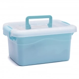Tout le contenu se range facilement dans une boîte rigide avec couvercle et poignée, afin qu’aucune pièce ne se perde.