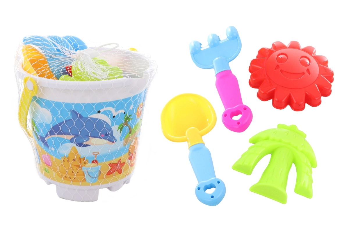 Offrez aux enfants des heures de jeu sur le bac à sable comme à la plage. Le set complet avec un seau d’environ 17 cm de hauteur fournit tout le nécessaire pour construire des châteaux et créer des formes – de la pelle et du râteau jusqu’aux deux moules. L’emballage pratique en filet facilite le transport et le séchage après le jeu.