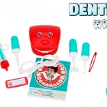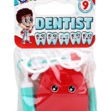 Ce set dentaire coloré est idéal pour les petits docteurs curieux. Il contient tout le nécessaire pour examiner les jouets en s’amusant : modèle de mâchoires, miroir, sonde, « drille », seringue, pince, lunettes et badge. Un schéma clair de numérotation des dents est également inclus pour aider les enfants à acquérir facilement les bases des soins dentaires.