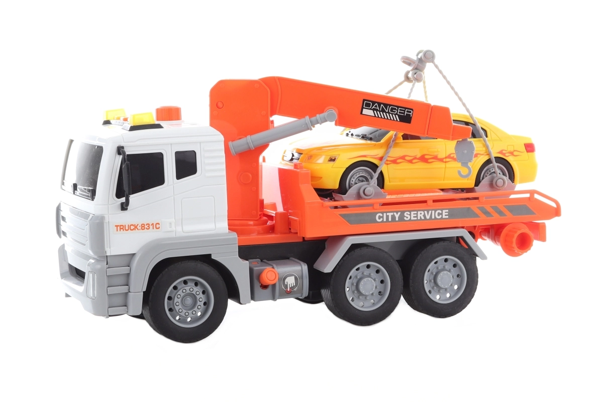 Cette dépanneuse robuste offre aux enfants une expérience authentique des services municipaux. En appuyant sur les boutons intégrés, les lumières s’allument et des sons réalistes se font entendre, favorisant l’imagination et le développement sensoriel.