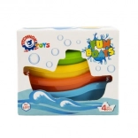 Le set comprend quatre bateaux aux couleurs vives — bleu, orange, vert et jaune — qui peuvent être facilement empilés pour un rangement simple. La forme et les couleurs des bateaux stimulent l’imagination et la créativité des enfants pendant les jeux d’eau.