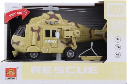 En appuyant sur le bouton, l’hélicoptère émet des sons et s’illumine, ce qui contribue fortement à une expérience de jeu réaliste. Celle-ci est également renforcée par les piles AG13/LR44 fournies, incluses dans l’emballage.
