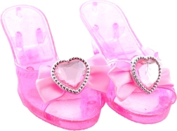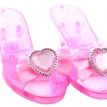 Des escarpins roses à talon haut ornés de petits cœurs et de nœuds, idéals pour chaque petite princesse.