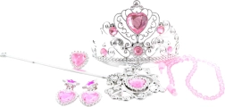 Ce coffret comprend un diadème orné de cœurs roses, des boucles d’oreilles, un collier et une bague que votre petit noble appréciera.