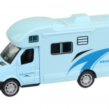 Construction métallique robuste avec fenêtres réalistes, décors imprimés et éléments de toit pour un jeu fidèle sur le thème du voyage et du camping.