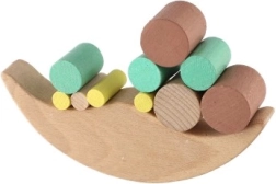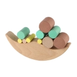 Le jeu contient différents blocs que les enfants placent sur la base d'équilibre, exerçant ainsi leur motricité fine.