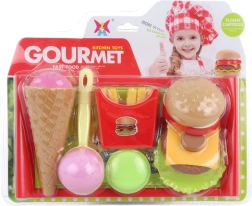 Ce set coloré de nourriture est un excellent complément pour une cuisine pour enfants. Les petits peuvent préparer un burger à leur goût, façonner et servir la glace avec la cuillère à glace, puis tout présenter sur le plateau fourni. Les détails réalistes encouragent l’imitation de la vraie cuisine et du service.