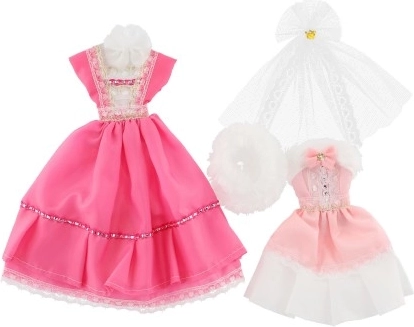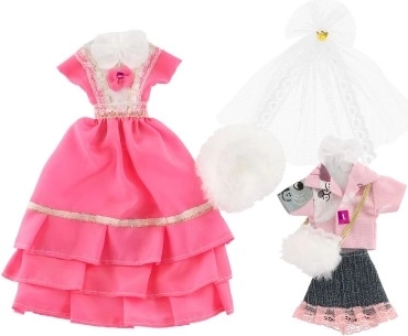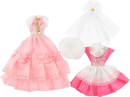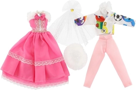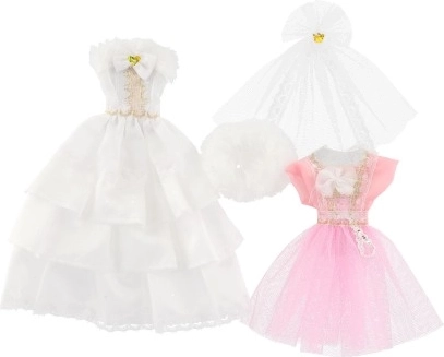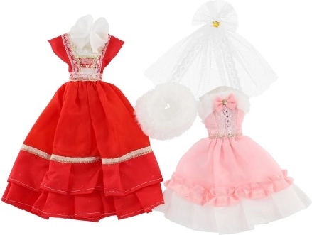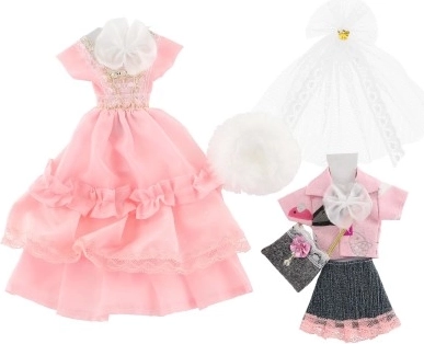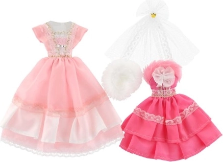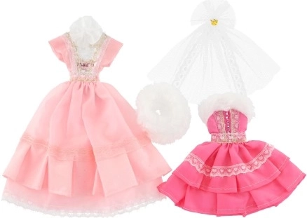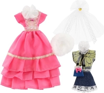 Transformez votre poupée en une icône de mode avec notre ensemble de vêtements. Comprend deux types de magnifiques robes avec des détails en dentelle élégants, accompagnées d'astucieux accessoires pour différentes occasions. Un excellent choix pour toutes les petites créatrices de mode !