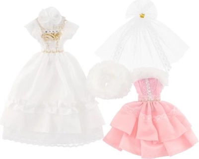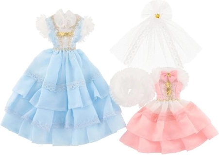 Deux ensembles distincts de robes, chacune avec ses propres détails, qui donnent à chaque poupée une apparence unique.