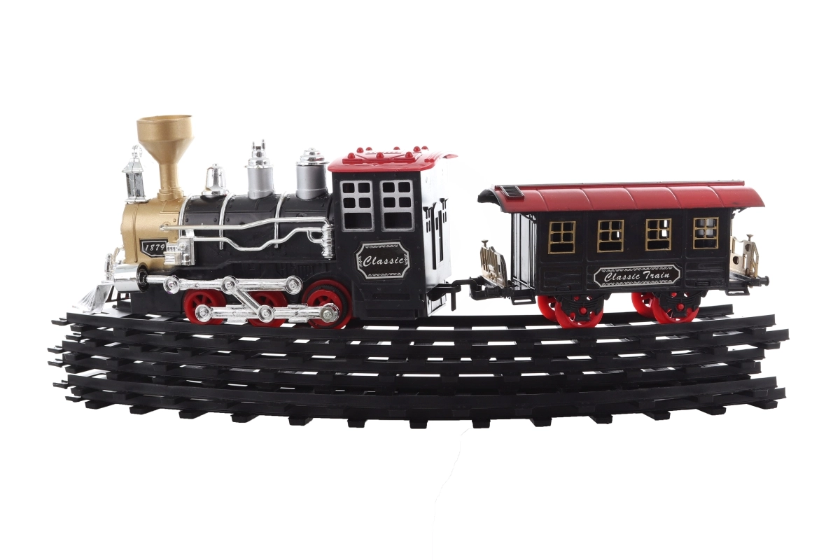 Ce circuit de train exceptionnel offre un divertissement parfait pour les enfants et les passionnés de trains de tous âges. La locomotive s’illumine, émet des sons et fume même, ce qui renforce le réalisme lors du trajet. Grâce à ses finitions détaillées et à son design rétro avec des accents noirs et dorés, ce petit train est l’accessoire idéal pour un réseau domestique.