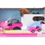 Grande voiture en plastique pour poupées avec remorque et cheval, offrant aux enfants beaucoup de plaisir pour jouer à la ferme comme en excursion. L’ensemble propose une construction robuste, un design attrayant et de grandes dimensions pour une manipulation aisée. Jouet idéal pour les petits amoureux des chevaux dès 3 ans.