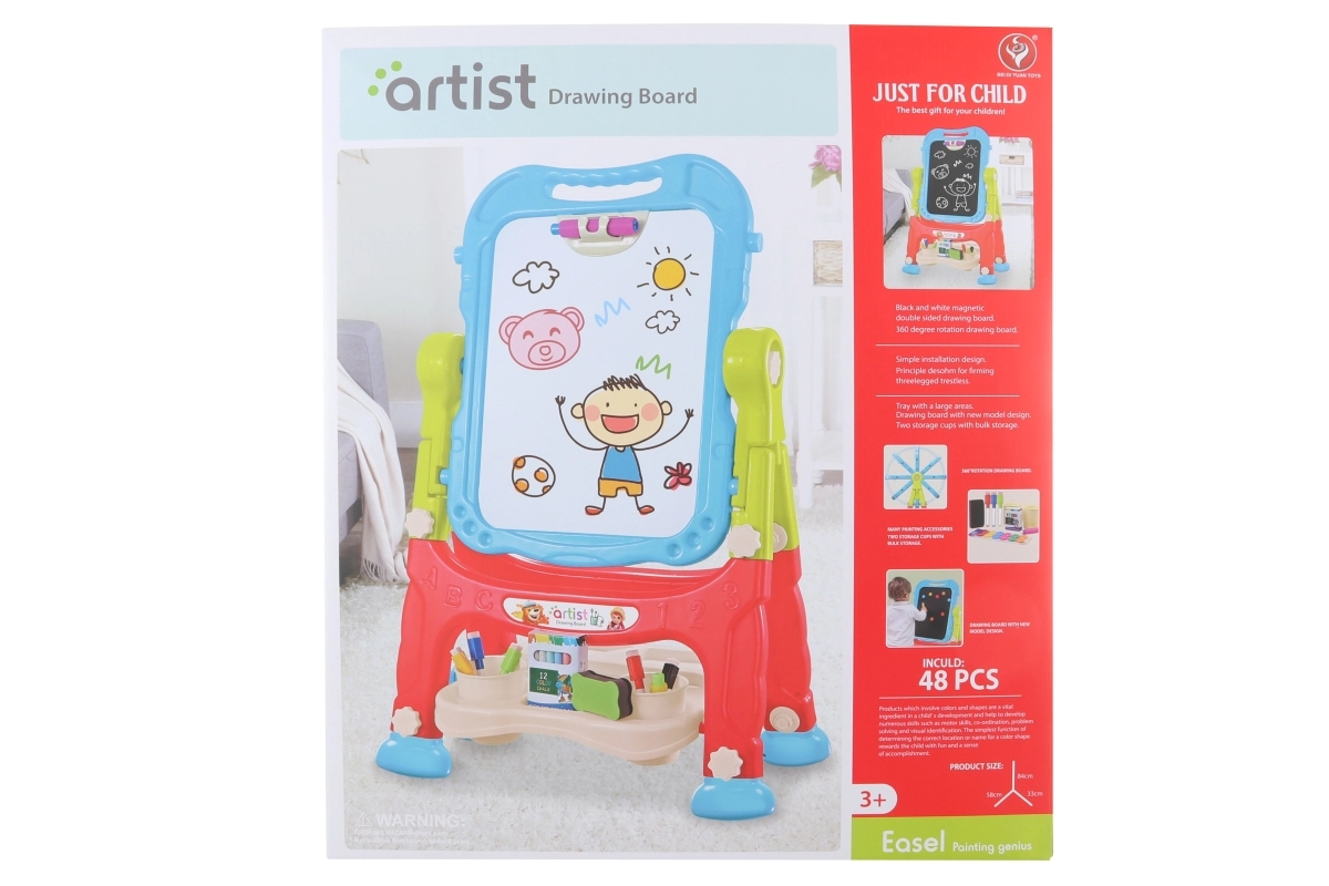 Le grand tableau à dessin est un excellent outil pour développer la créativité et l’imagination des enfants. L’ensemble comprend :