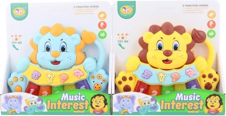 Petit piano en plastique en forme de lionceau, qui joue et émet des sons d’animaux. Jouet idéal pour les tout-petits à partir de 12 mois.