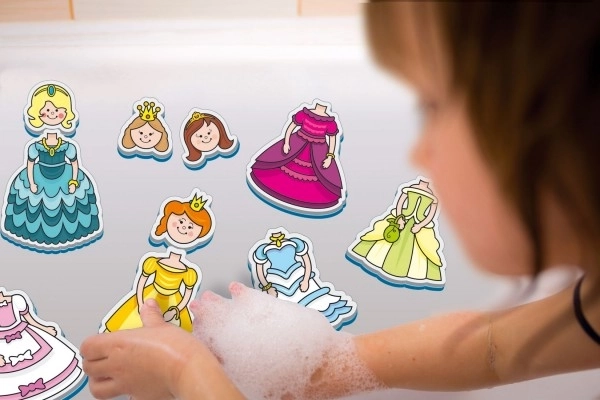 L'ensemble d'autocollants de bain 'Mes premiers contes - Princesses' apporte du plaisir à chaque bain. Il suffit de mouiller et de facilement coller à la surface et laisser les enfants créer des scènes amusantes :