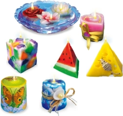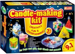 Avec ce grand coffret, vous pouvez fabriquer jusqu’à 9 bougies confortablement à la maison. Différentes couleurs et formes de bougies (cœur, pastèque, marine, flottante, fromage et souris, mosaïque, etc.). Le coffret contient tout le nécessaire pour la fabrication (paraffine, moules de coulée, colorant, mèches, peintures acryliques, colle, paillettes, perles en verre, rubans satinés, etc.). Le kit comprend par exemple une base de cire, des pochoirs, des gobelets, des petits moules, un fil métallique, des perles, des coquillages, une serviette décorative, des peintures, un ruban, de la colle, une ficelle, des crayons de cire et bien plus encore. Dimensions de l’emballage 30 x 44 x 6 cm. Âge 7+. FABRIQUÉ EN EUROPE