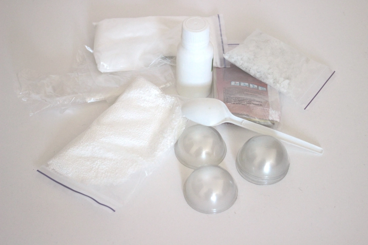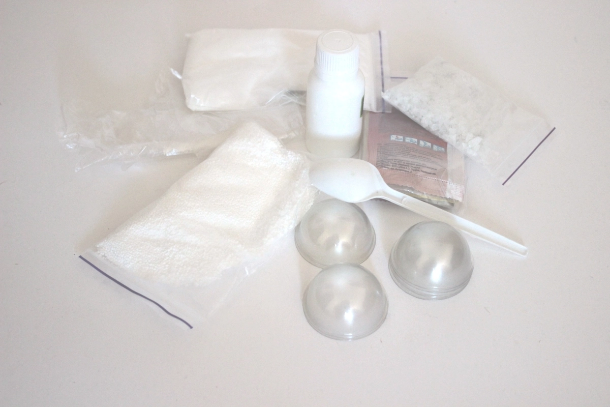 Le kit comprend les ingrédients et les accessoires pour fabriquer 4 bombes de bain – il suffit d’ajouter un peu d’eau et la création peut commencer.