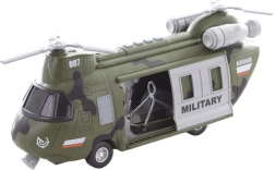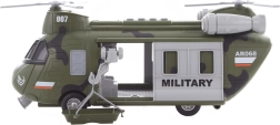Ce hélicoptère militaire à piles, riche en détails, offre aux enfants de nombreuses possibilités de jeu créatif. En appuyant sur un bouton, les effets lumineux et sonores s’activent pour renforcer l’ambiance de missions d’action.
