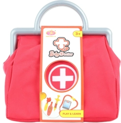 Le set de docteur comprend un stéthoscope en plastique, un otoscope, une seringue, un badge nominatif et un thermomètre. Dimensions du sac : environ 20 × 22,5 × 8,5 cm. Âge 3+.