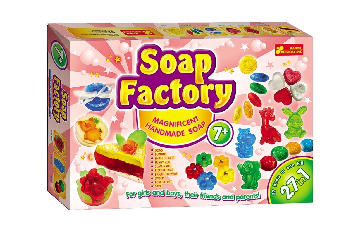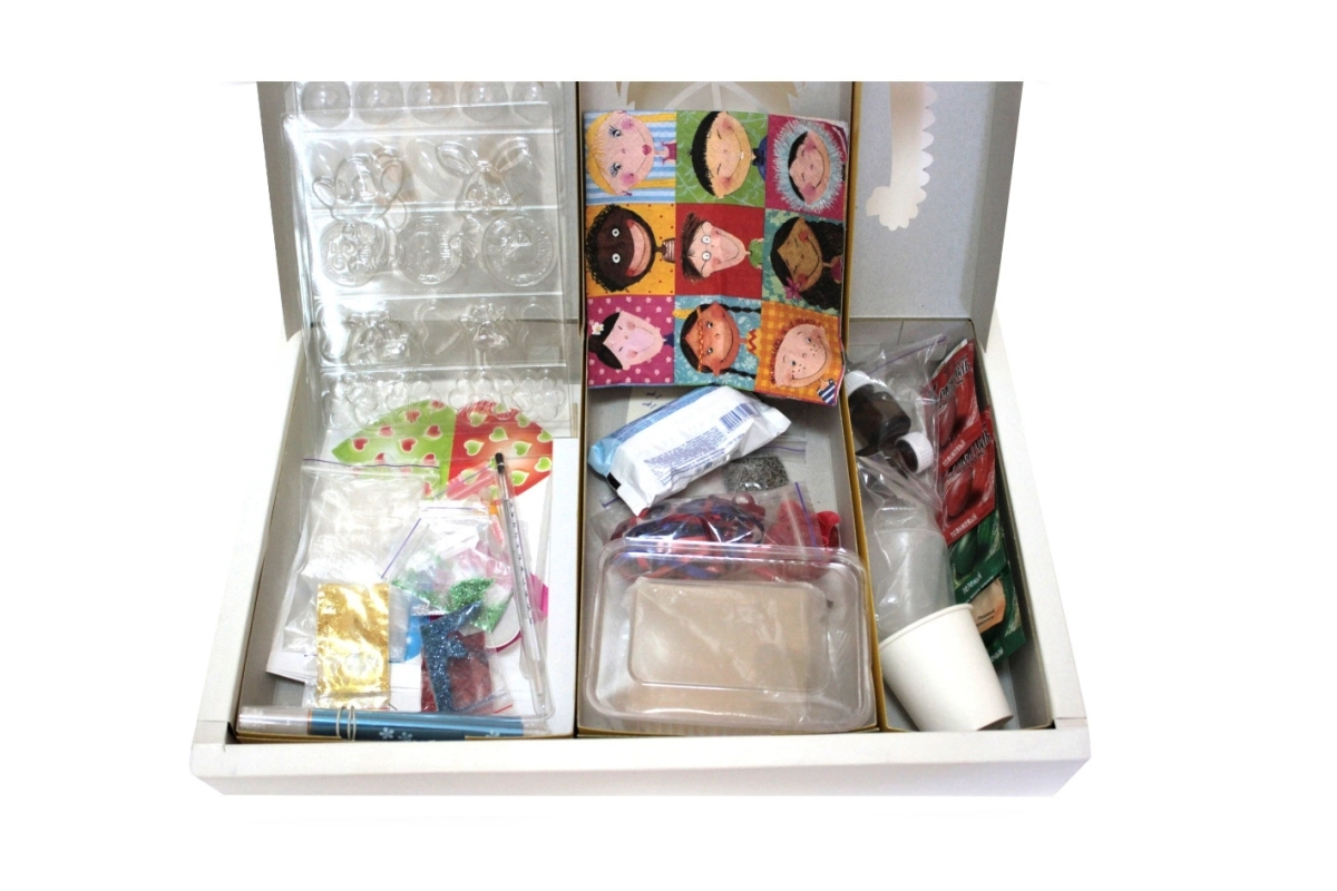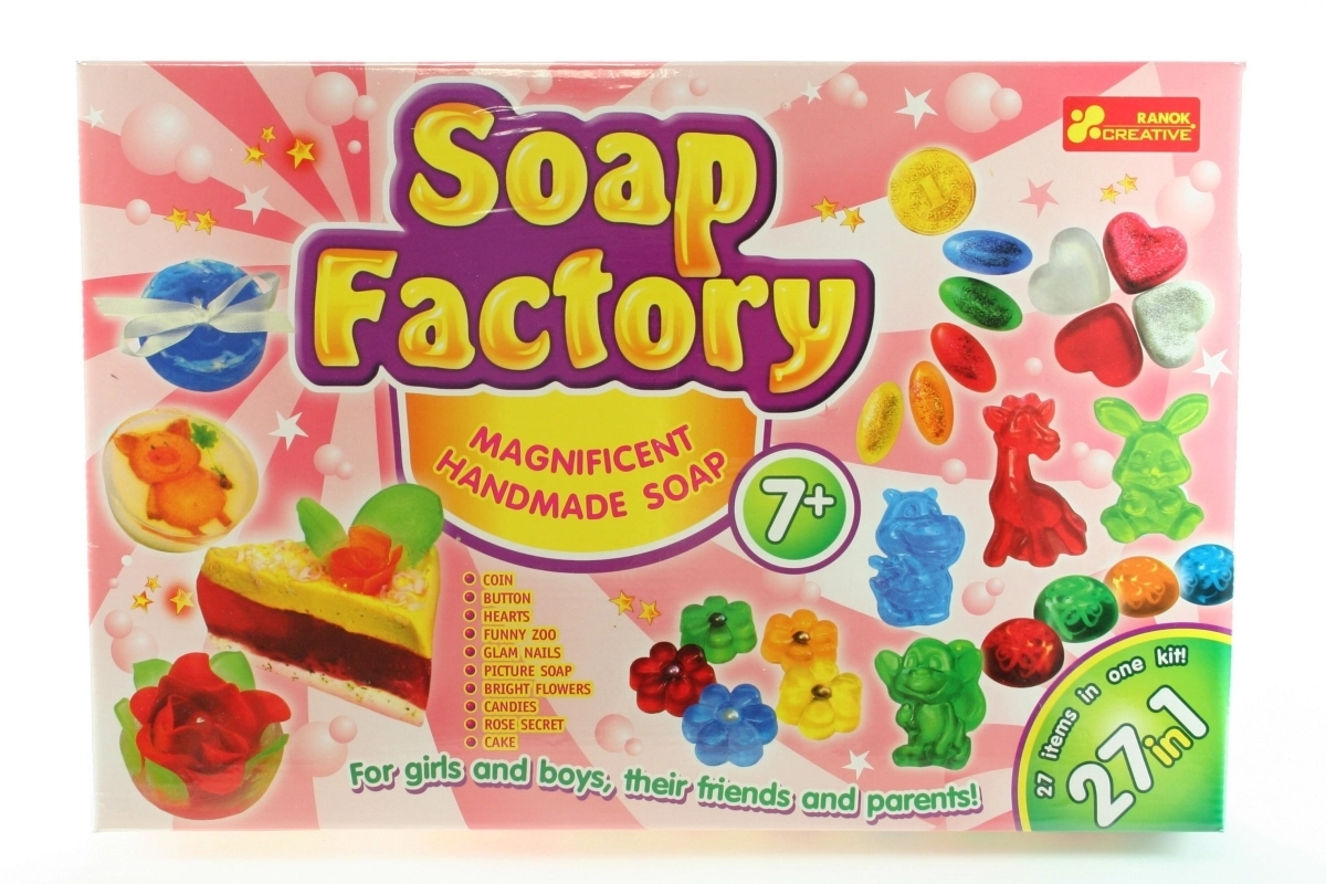 Le grand kit de fabrication de savons est un beau cadeau pour tous les enfants créatifs. Le kit contient tout le nécessaire pour fabriquer jusqu’à 27 savons (pièces, cœurs, boutons, animaux, fleurs, gâteau, bonbons et d’autres formes). Le kit comprend par exemple une base à savon, un colorant alimentaire, une serviette colorée, des essences parfumées, des gobelets, une pipette, des paillettes, des pochoirs, des perles, des rubans et bien plus encore. Dimensions de l’emballage env. 44 × 30 cm. Âge 7+. FABRIQUÉ EN EUROPE