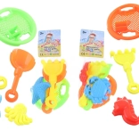 Set de sable pour enfants avec 5 pièces, idéal pour s’amuser au terrain de jeu comme au bord de l’eau. Contient un tamis, une pelle, un râteau et deux moules. Conception légère et sûre, idéale pour les enfants dès 3 ans.
