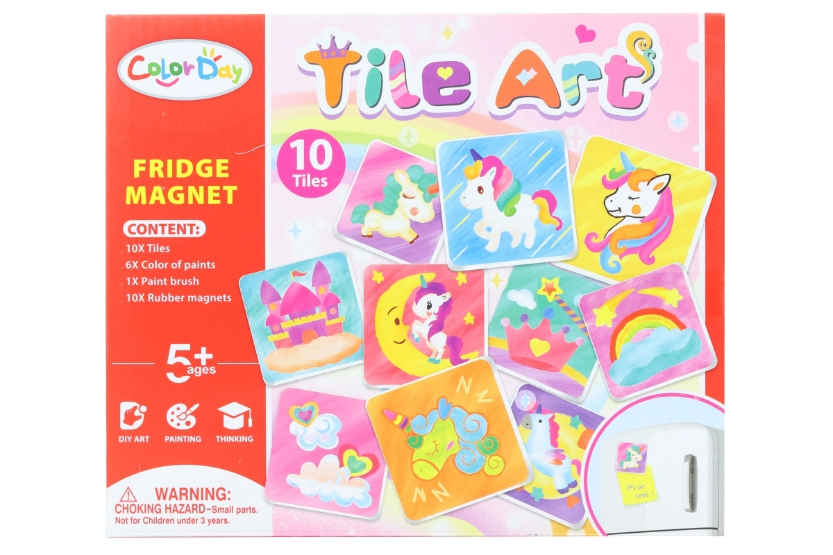 Découvrez un kit ludique pour enfants dédié à la fabrication d’aimants pour réfrigérateur. Le coffret contient 10 plaquettes en porcelaine, 10 aimants, 6 peintures et un pinceau – tout ce dont les enfants dès 5 ans ont besoin pour créer leurs propres décorations originales.