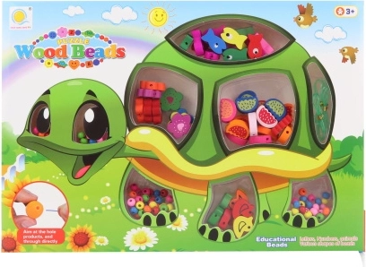 Un kit créatif de perles en bois sur le thème de la tortue pour les enfants dès 3 ans, qui développe la motricité fine et l’imagination. Contient de nombreuses formes colorées et des cordelettes pour l’enfilage dans un emballage pratique d’environ 28 × 19,5 × 2,5 cm.