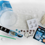 Le coffret comprend un large choix d’outils et de matériaux : bacs à glaçons, pâte à modeler, bougie, petits cailloux, gobelets, paille, colorant alimentaire, pochoirs, fil et autres fournitures. Un mode d’emploi clair en tchèque, étape par étape, est également inclus pour commencer presque immédiatement les expériences.
