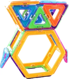 Essayez le jeu de construction magnétique MagKiss, qui offre non seulement du divertissement, mais aussi un soutien au développement et à la créativité de vos enfants. Cet ensemble comprend 24 pièces en forme de triangles, de carrés et d’hexagones. Grâce à sa simplicité et à son universalité, le jeu de construction convient à l’assemblage de toutes sortes de formes imaginatives.