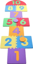 Puzzle en mousse en forme de marelle. Contient 10 pièces. Dimensions de l’emballage env. 56 × 30 × 6,5 cm. Âge 3+.