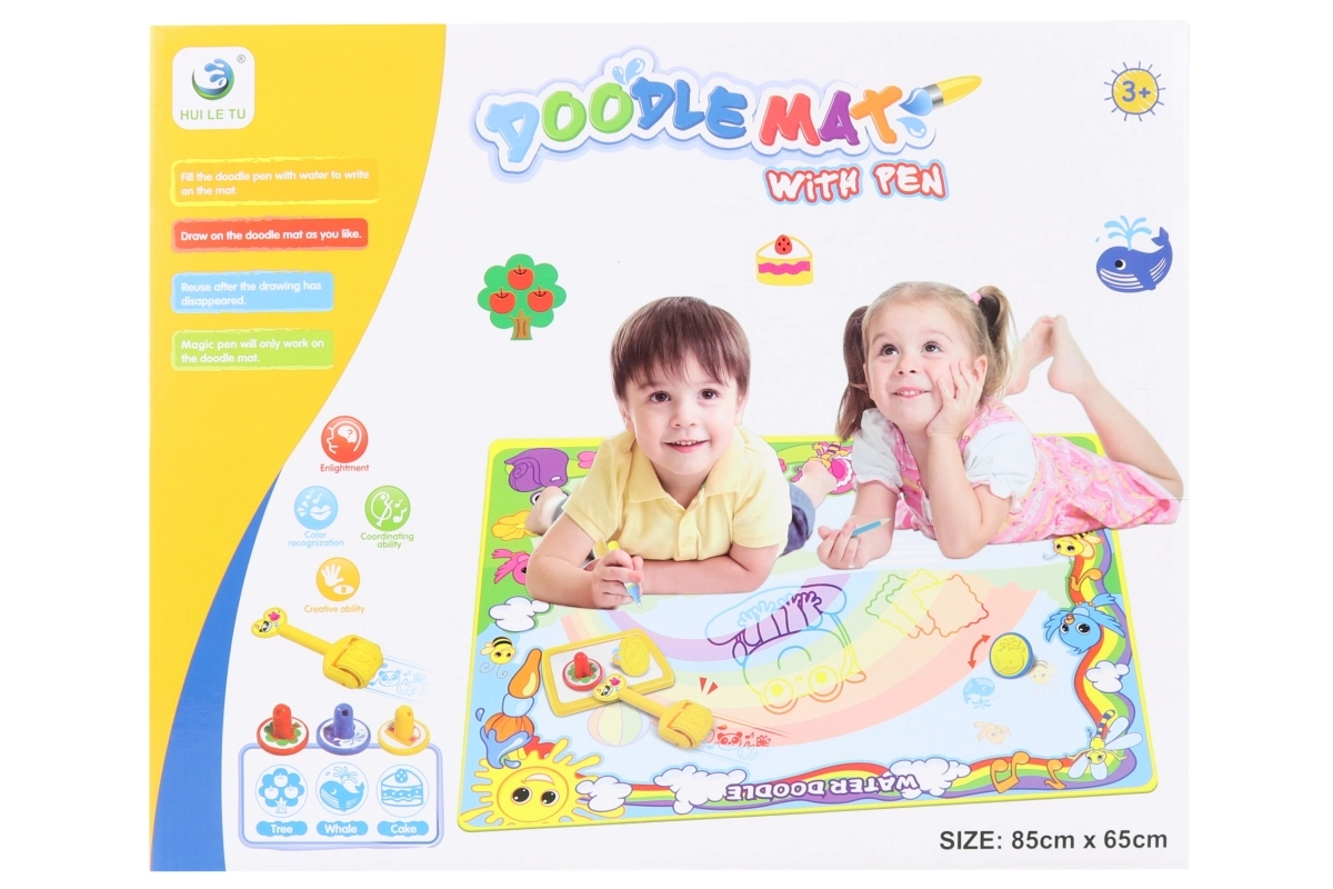 - Tapis magique de dessin, 2 stylos à eau, 1 pinceau, 3 tampons, autres accessoires