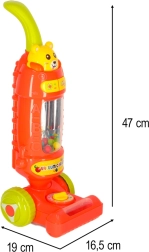 Cet aspirateur-balai pour enfants, coloris framboise, est le jouet idéal pour les petits aides à la maison. Grâce à ses effets lumineux et sonores, il ressemble à un véritable appareil ménager et donne aux enfants l’impression de participer aux tâches quotidiennes. À l’intérieur, des billes colorées montent et descendent pendant le fonctionnement, rendant le jeu encore plus attrayant.