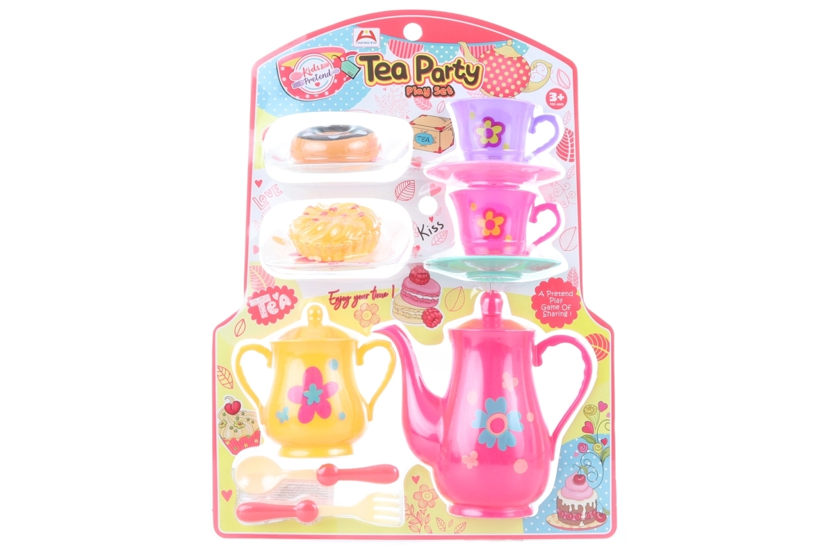Amusant service à thé en plastique pour petits hôtes et hôtesses, il apporte tout le nécessaire pour une parfaite fête du thé. L’ensemble comprend une théière, un sucrier, deux tasses avec sous-tasses, deux plateaux avec pâtisseries, une fourchette et une cuillère. Idéal pour les enfants dès 3 ans et pour développer l’imagination et les jeux de société.