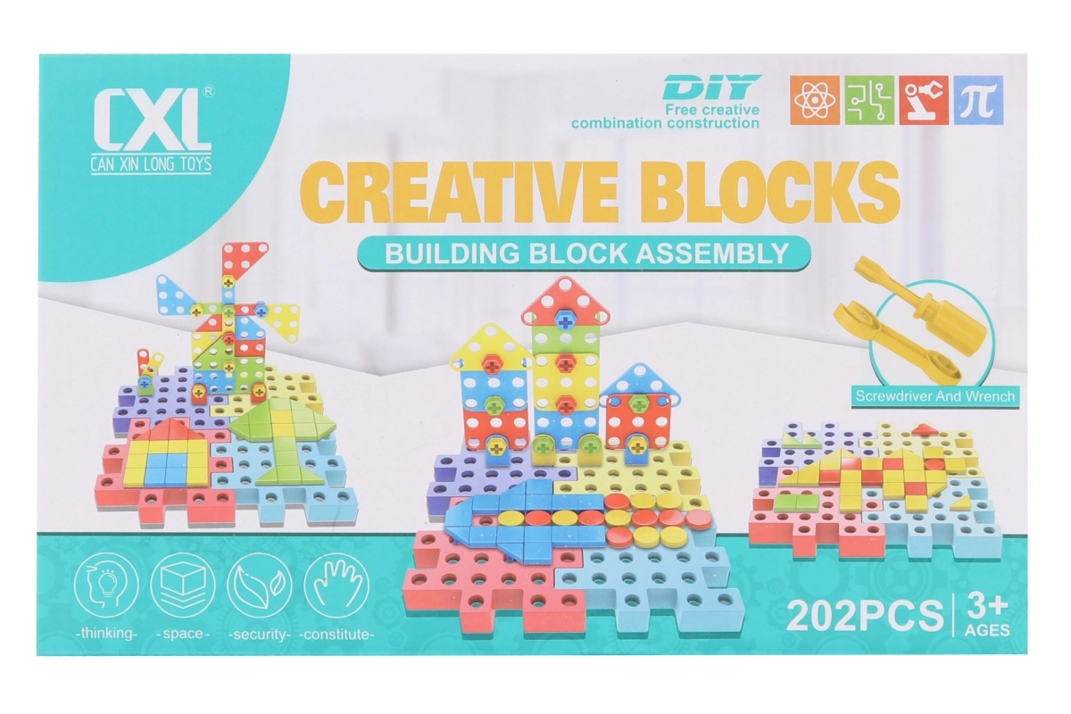 Jeu de construction universel à visser pour enfants dès 3 ans, qui développe la motricité fine, la créativité et la pensée logique. L’ensemble contient 202 pièces en plastique, avec lesquelles les enfants peuvent construire une ville, des véhicules et leurs propres modèles originaux. Le vissage simple est amusant et sûr, et favorise un jeu créatif sans limites.