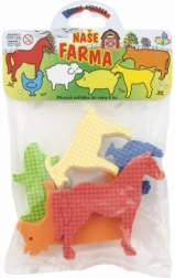 Découvrez la joie du bain avec les autocollants en mousse Notre ferme. Grâce à leur matériau souple et léger, les pièces tiennent facilement dans les petites mains, adhèrent à la baignoire ou au carrelage après immersion, puis se retirent et se réutilisent aisément. Les motifs colorés de la ferme stimulent la perception des couleurs, la coordination œil–main et le jeu créatif.