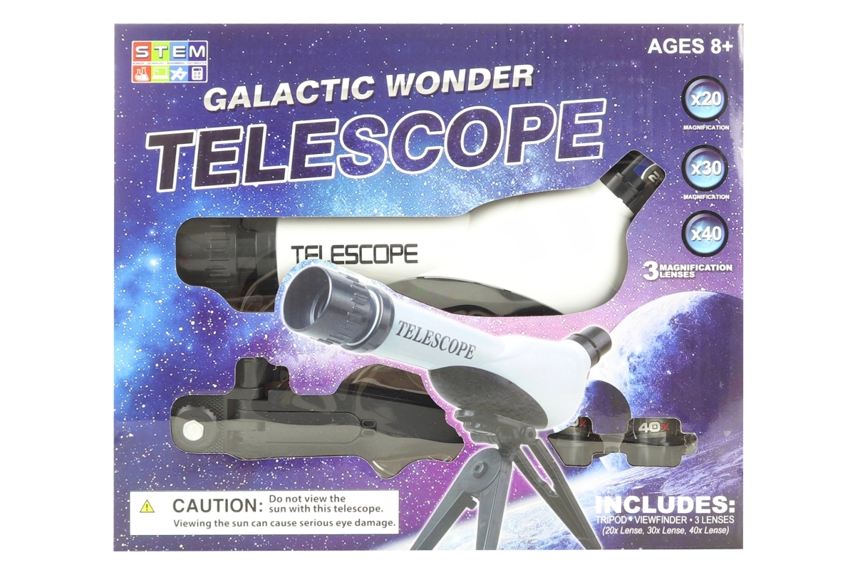 Découvrez le ciel nocturne avec ce télescope pour enfants en plastique avec trépied, offrant un objectif de 60 mm de diamètre, des grossissements 20×, 30× et 40× et une mise au point à 170 mm facile. Idéal pour les astronomes débutants dès 8 ans.