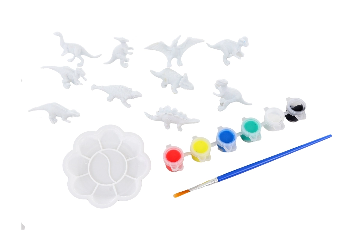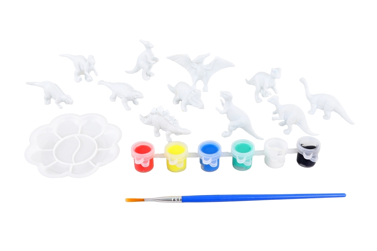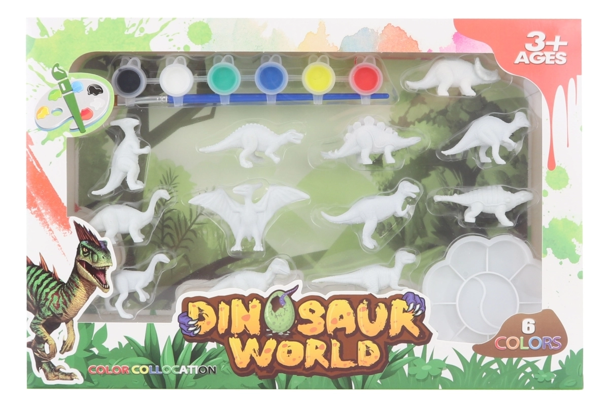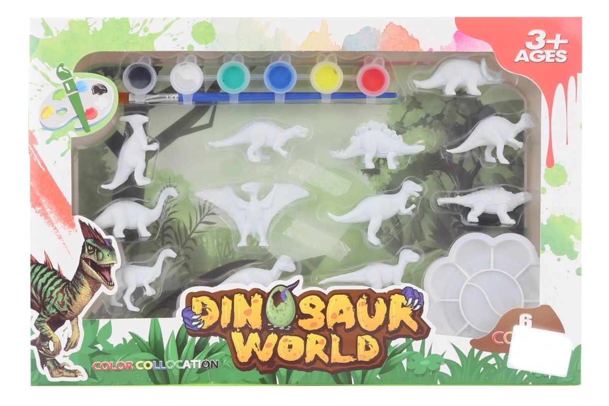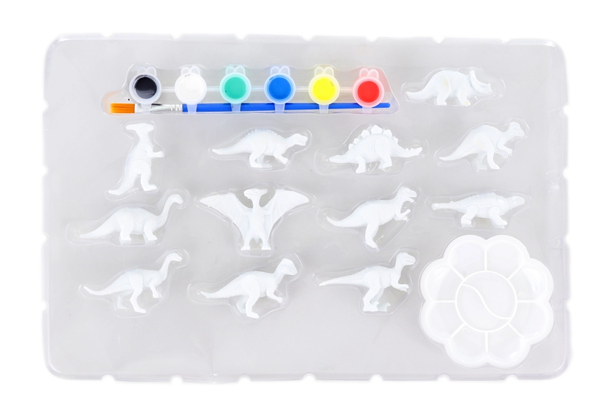 Le set comprend des dinosaures 3D, 6 couleurs, un pinceau et une palette – les enfants peuvent créer immédiatement, sans accessoires supplémentaires.